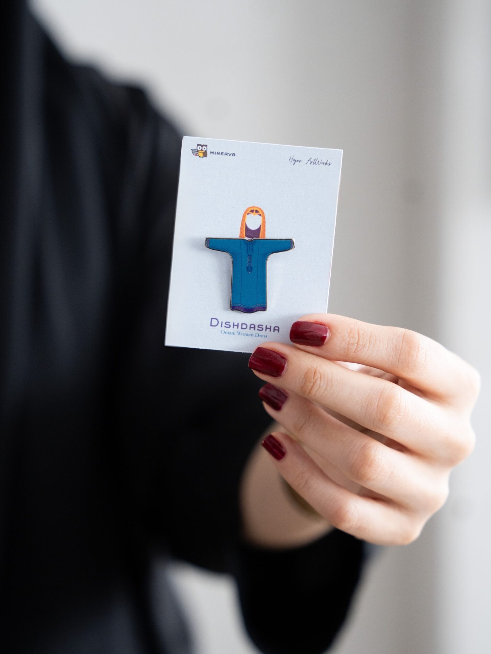 This Omani Dress Pin pays tribute to the graceful dishdasha worn by Omani women — known for its colorful embroidery and flowing design.